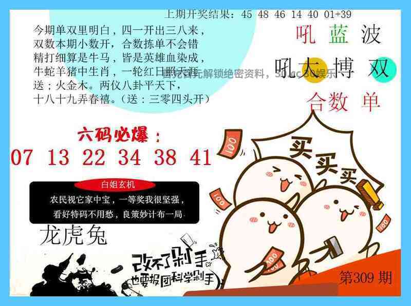 308期:肉菜草肖(吃菜吃肉)开:兔39错